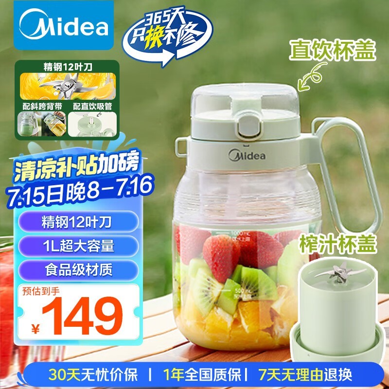 美的榨汁杯便携家用充电式榨汁机限时优惠